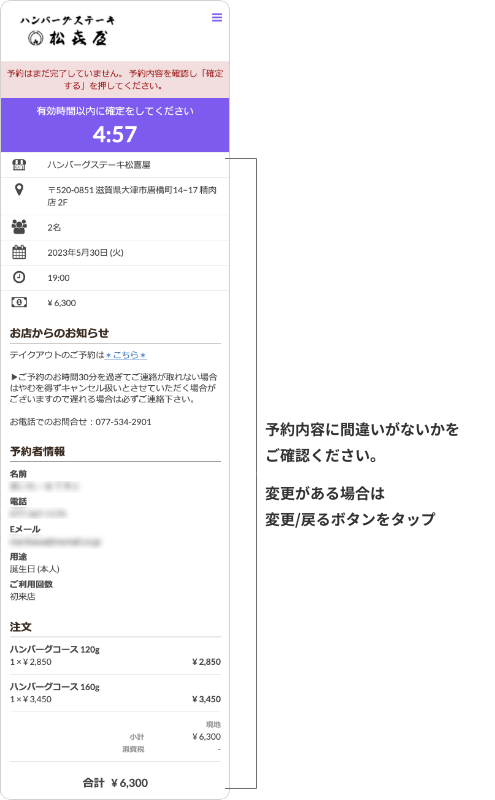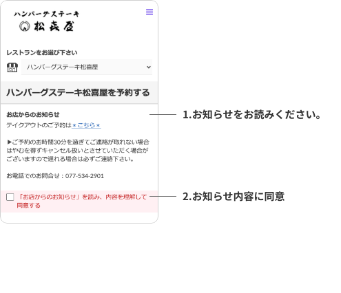 ハンバーグステーキ 松喜屋 予約フォームインターネット予約の方法Reservation Method