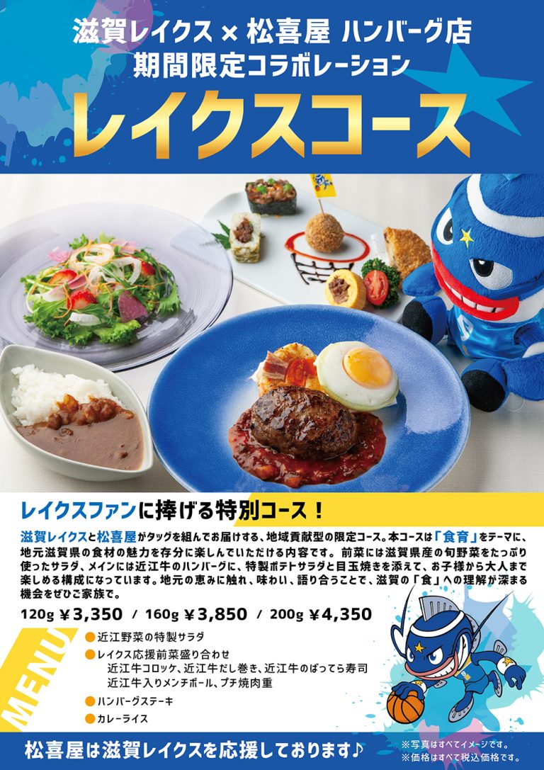 滋賀レイクス×松喜屋ハンバーグ店「レイクスコース」登場!